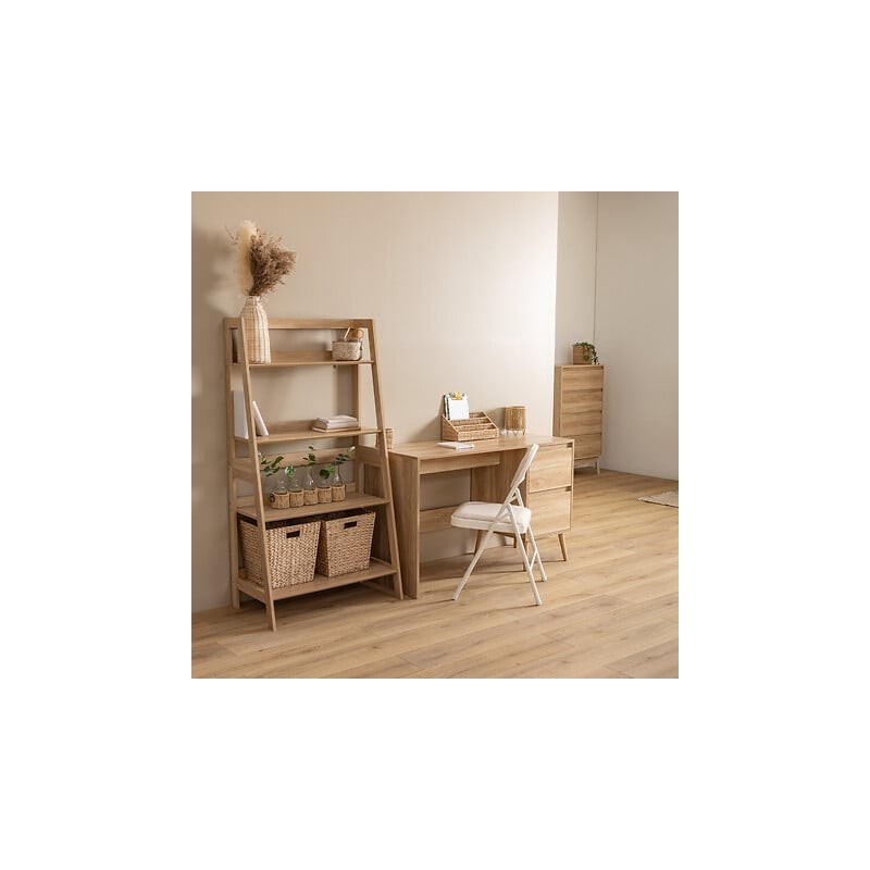 Le bureau avec caisson sur pieds composé de deux tiroirs est simple et épuré dans un style scandinave.