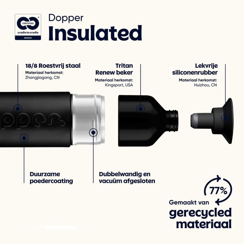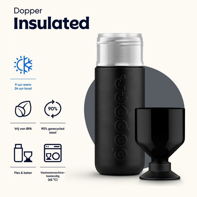 La gourde isotherme de la marque Dopper sera votre meilleur allié pour garder votre besoin chaude pendant 9 heures ou froide pendant 24 heures ! Elle est composée d'une bouteille et d'un verre ce qui permet aux arômes de la boisson de se dégager plus facilement, enrichissant l'expérience olfactive et gustative ! La gourde est fabriquée sans BPA et à 90% d'acier recyclé.