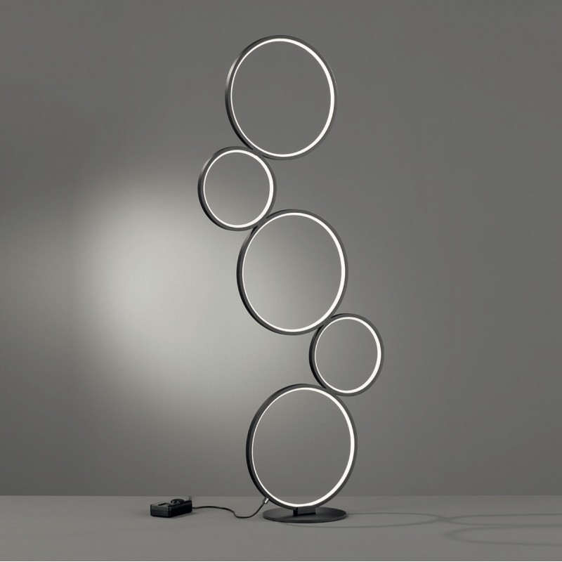 Le lampadaire RONDO composé de 5 anneaux de diamètres différents est équipé d'un variateur SWITCH pour ajuster la luminosité à sa guise. Il conviendra dans tous les styles de pièces. Son éclairage LED est un éclairage économe en énergie avec une qualité de lumière élevée, une longue durée de vie et des économies d'énergie allant jusqu'à 80%.