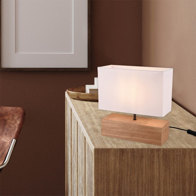 - Couleurs : structure bois, abat-jour blanc avec intérieur doré